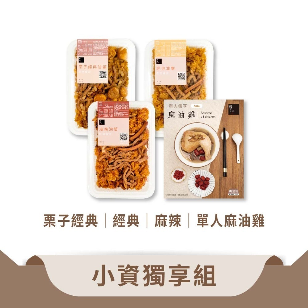 內容物/規格/重量/尺寸/數量:1入油飯(經典油飯/栗子經典油飯/麻辣油飯 任選)(375gX1)+單人麻油雞(500gX1)