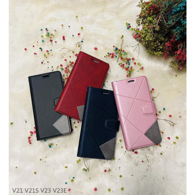 Vivo V21 V21S V23 V23E 菱格壓紋拼接卡片站立磁扣手機皮套保護殼
