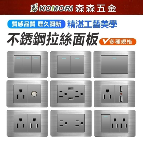 開關插座 面板 不鏽鋼面板 不銹鋼插座 不銹鋼拉絲面板 燈具開關 牆壁電器插座 螢光 指示燈 兩年質保