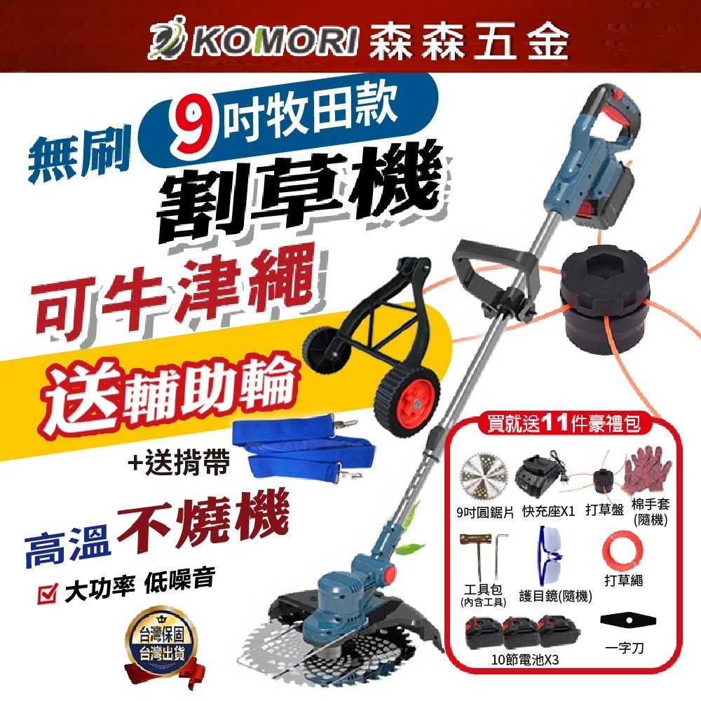 9吋 割草機 牛津繩割草機 電動割草機 除草機【保固一年 送12大豪禮包】牧田款割草機 充電式割草機【森森五金】