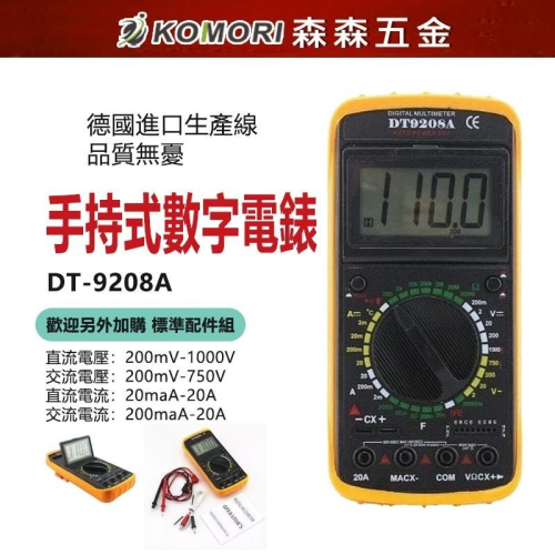 電錶 手持式數字電錶 電子式數位式 三用 電壓電阻電子式三用電錶 DT-9208A【森森五金】