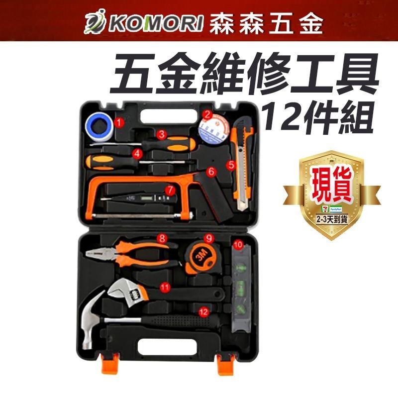 五金維修工具 12件組 工具箱 多功能家庭 維修組套 手動 工具箱 水電行 十字螺絲刀 梅花起子【森森五金】