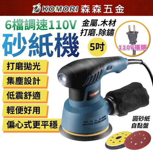 110V 砂紙機 5吋 6檔調速 砂光機 磨砂機 抛光機 拋光打磨 電動研磨機 除鏽 打磨機【森森五金】