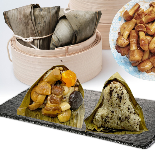 成分:花東糯米,黑松露醬,黑豬肉,台灣巴西蘑菇,干貝,櫻花蝦,鹹蛋黃,花生,段木香菇,米豆,栗子,豬油,油蔥,醬油,鹽巴