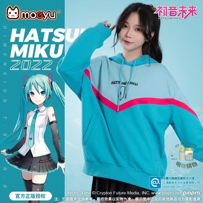 moeyu 初音未來 2022年 秋冬 新款 連帽衛衣 miku 印花 拼色 長袖連帽衫