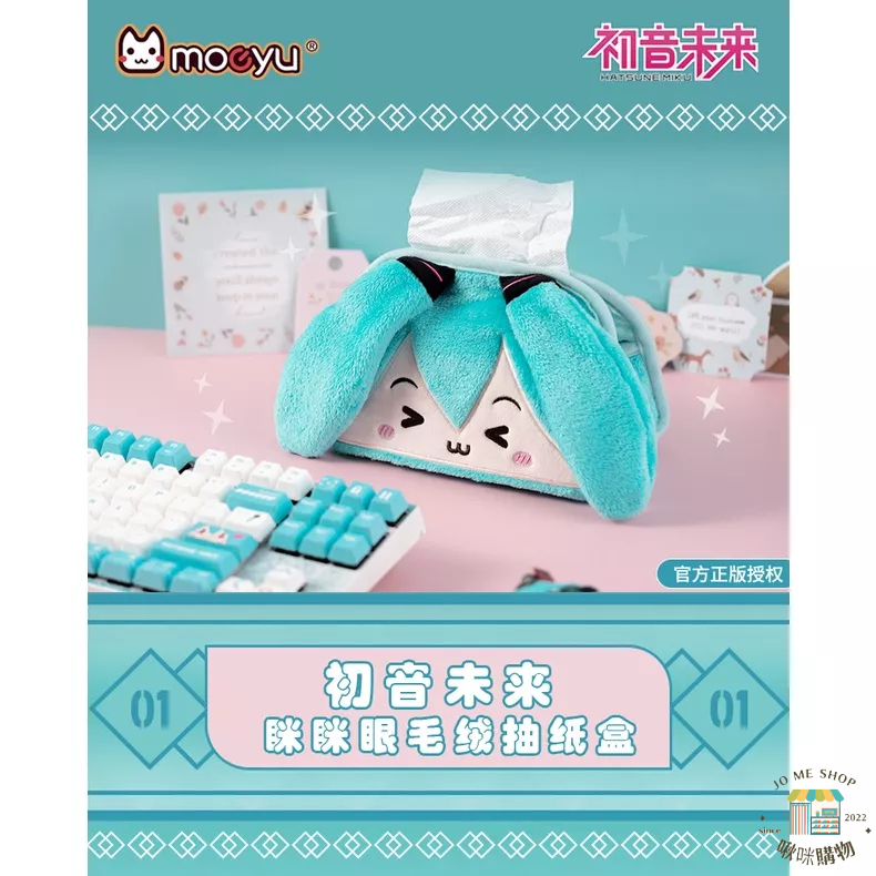 Moeyu 初音未來瞇瞇眼毛絨抽紙盒鈕扣開口miku可愛小巧紙巾盒