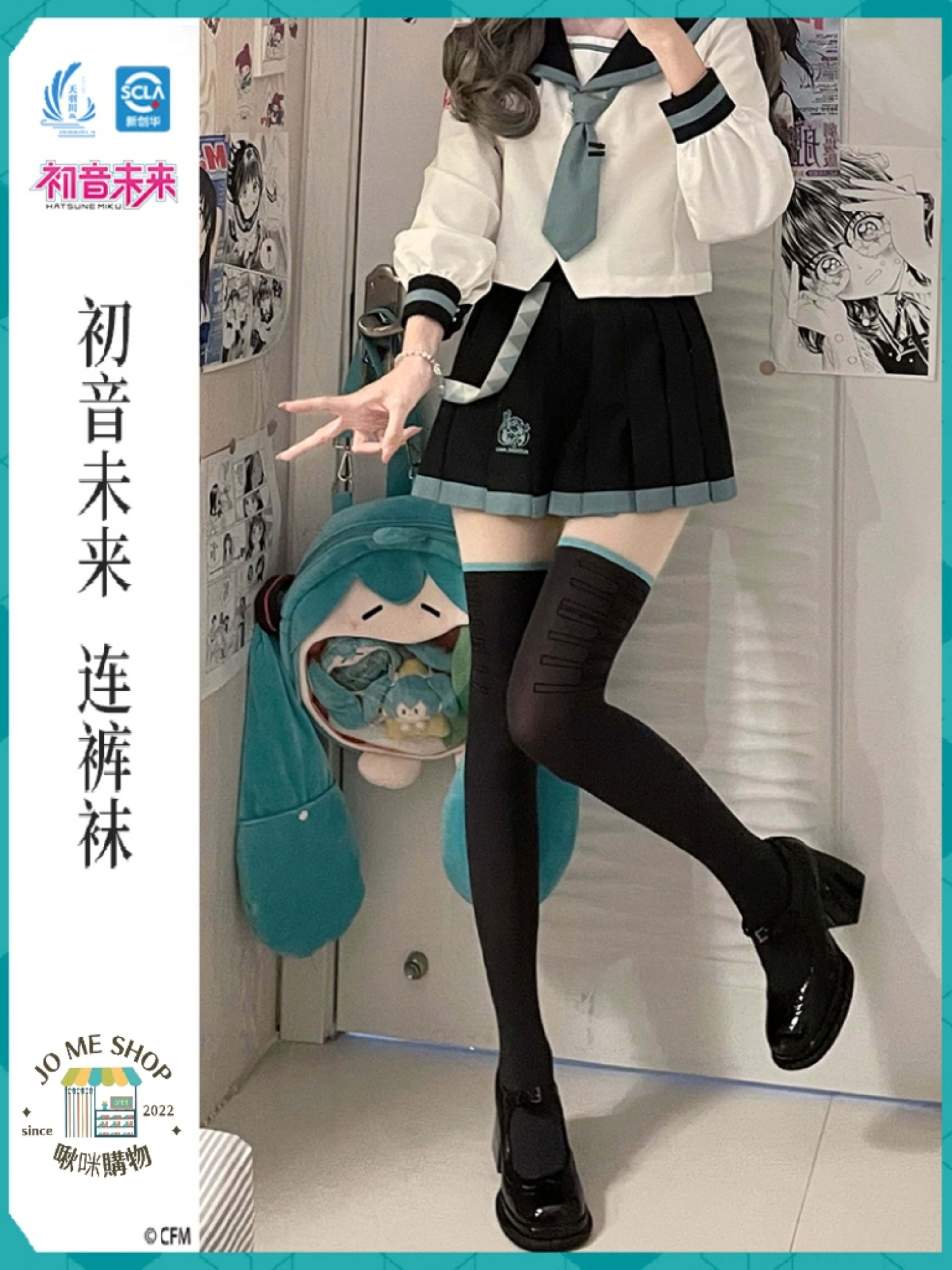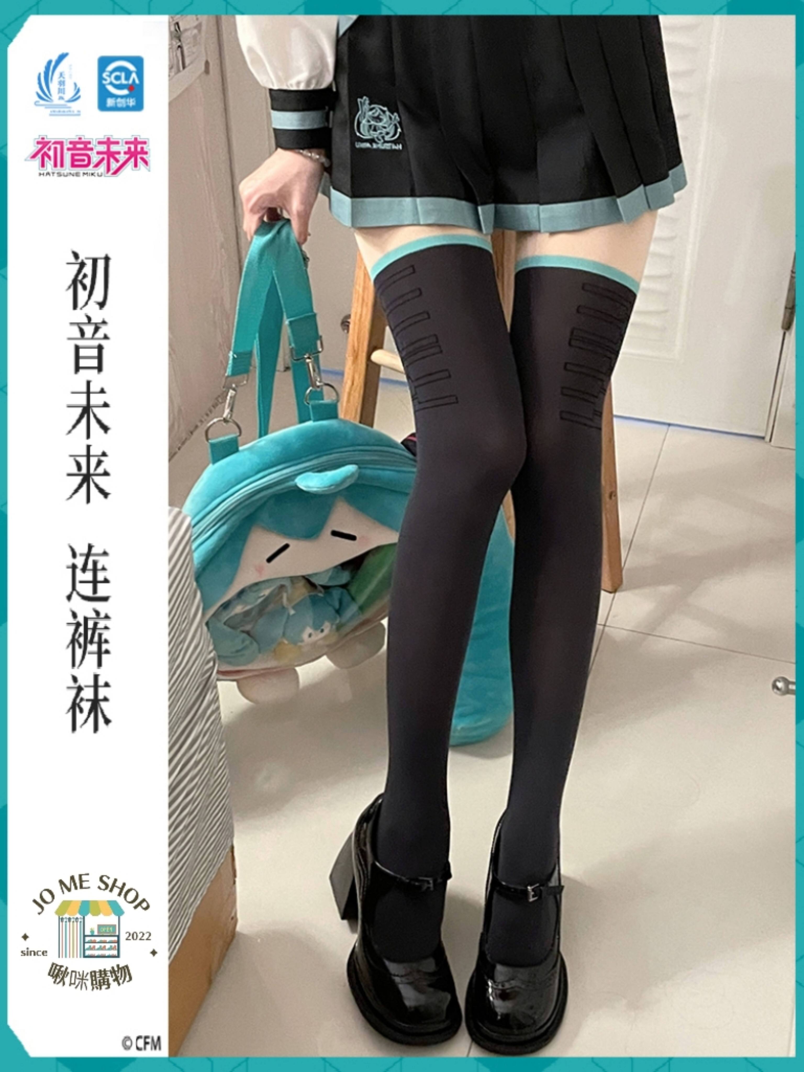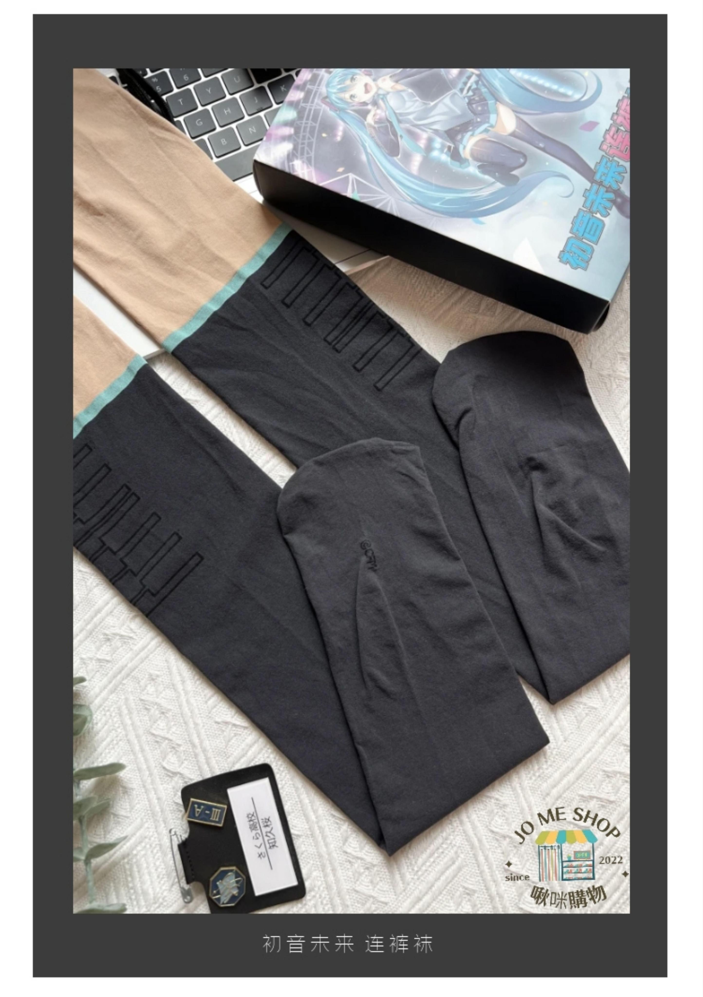 天羽川 👘初音未來 聯名 連褲襪 天鵝絨絲襪 假大腿 光腿 神器 假過膝 拼接襪