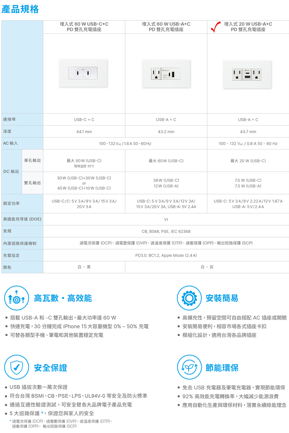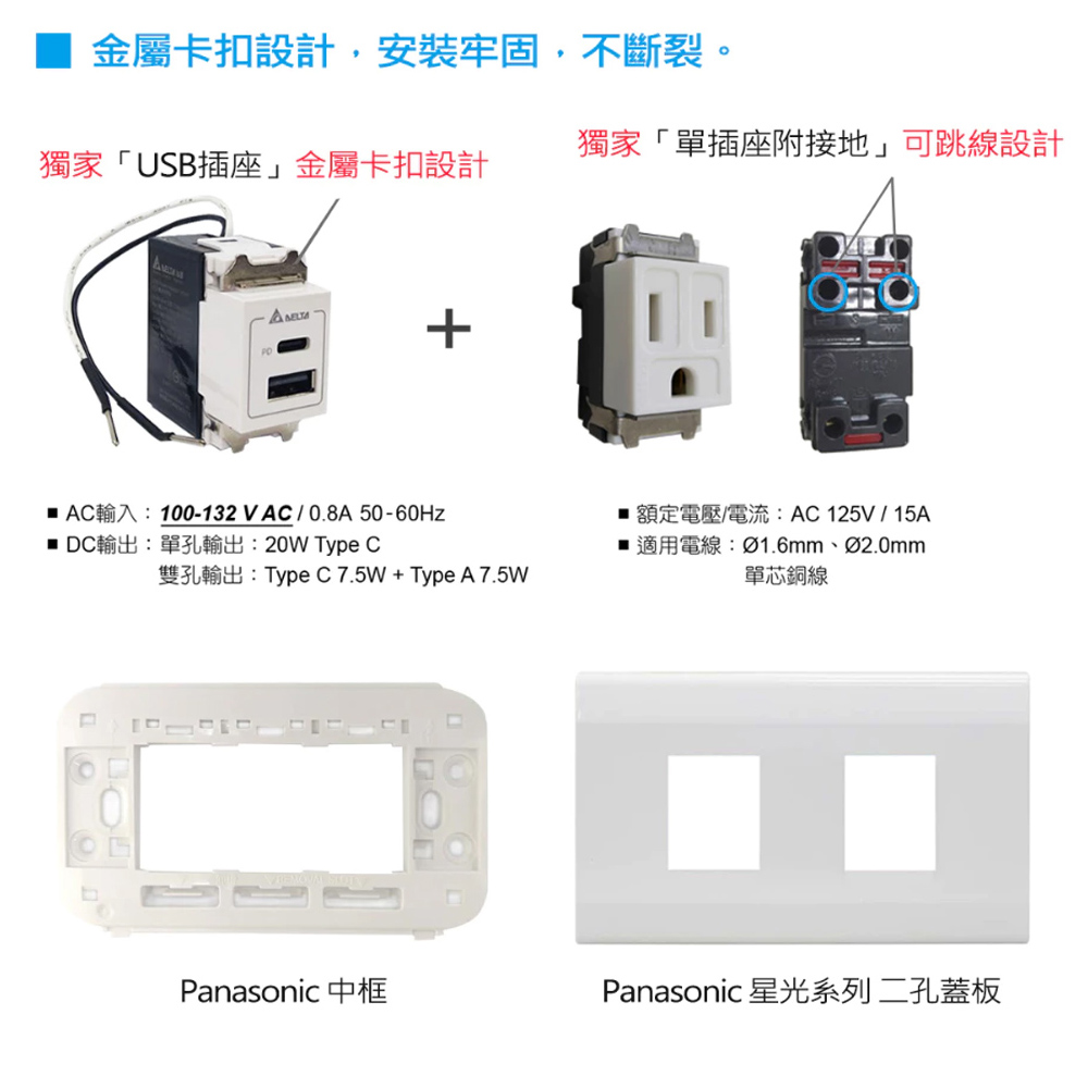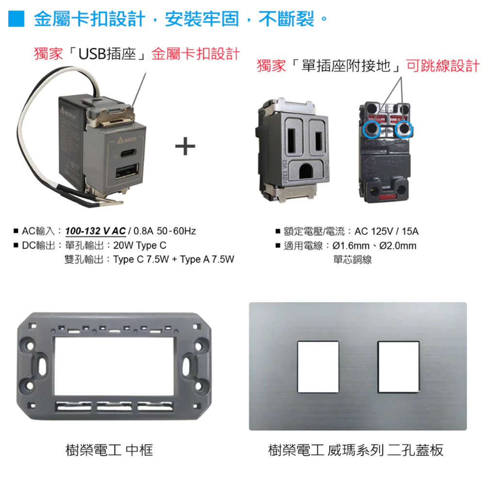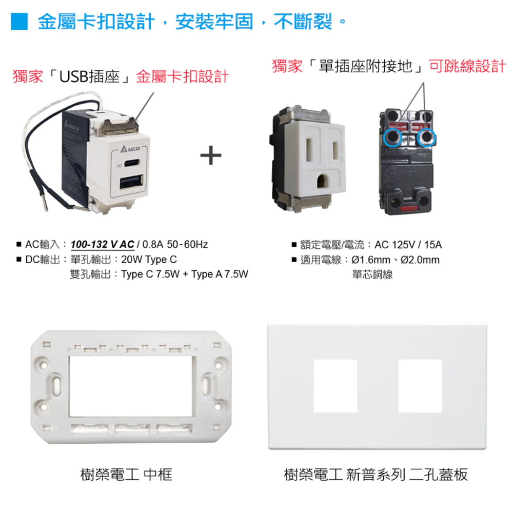 【台達Delta】20W充電插座 A+C PD雙孔充電插座 USB快充插座 Type C插座/兩孔/國際星光/樹榮代工