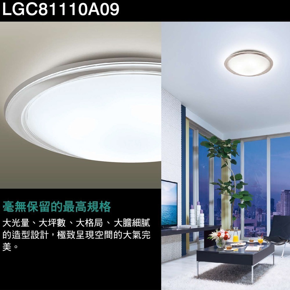 【Panasonic 國際牌】LED可調光・調色吸頂燈|LGC81110A09(大氣)|透明框/大光量/附遙控