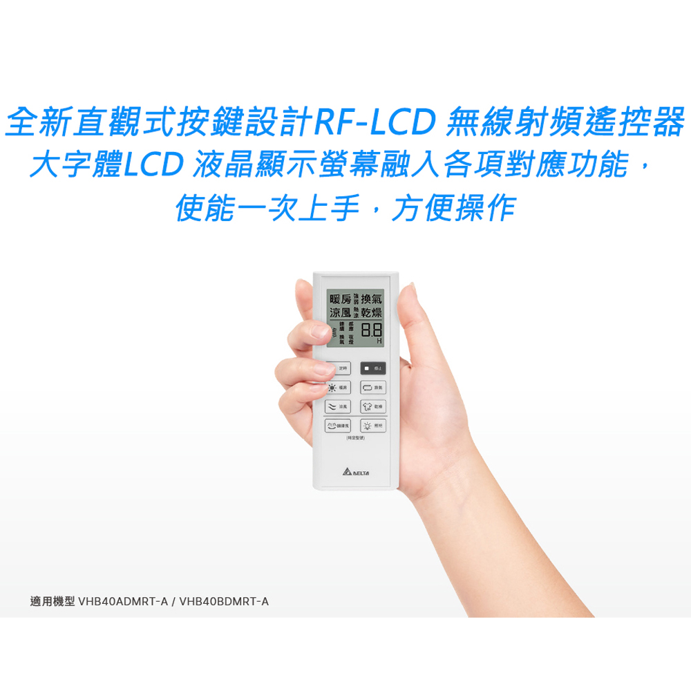 【台達電子】豪華型400系列|浴室暖風機 乾燥機 遙控|VHB40ADMRT-A//VHB40BDMRT-A