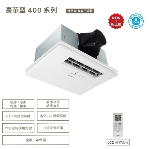 【DELTA台達】豪華型400系列|浴室暖風機 乾燥機 遙控|VHB40ADMRT-A//VHB40BDMRT-A