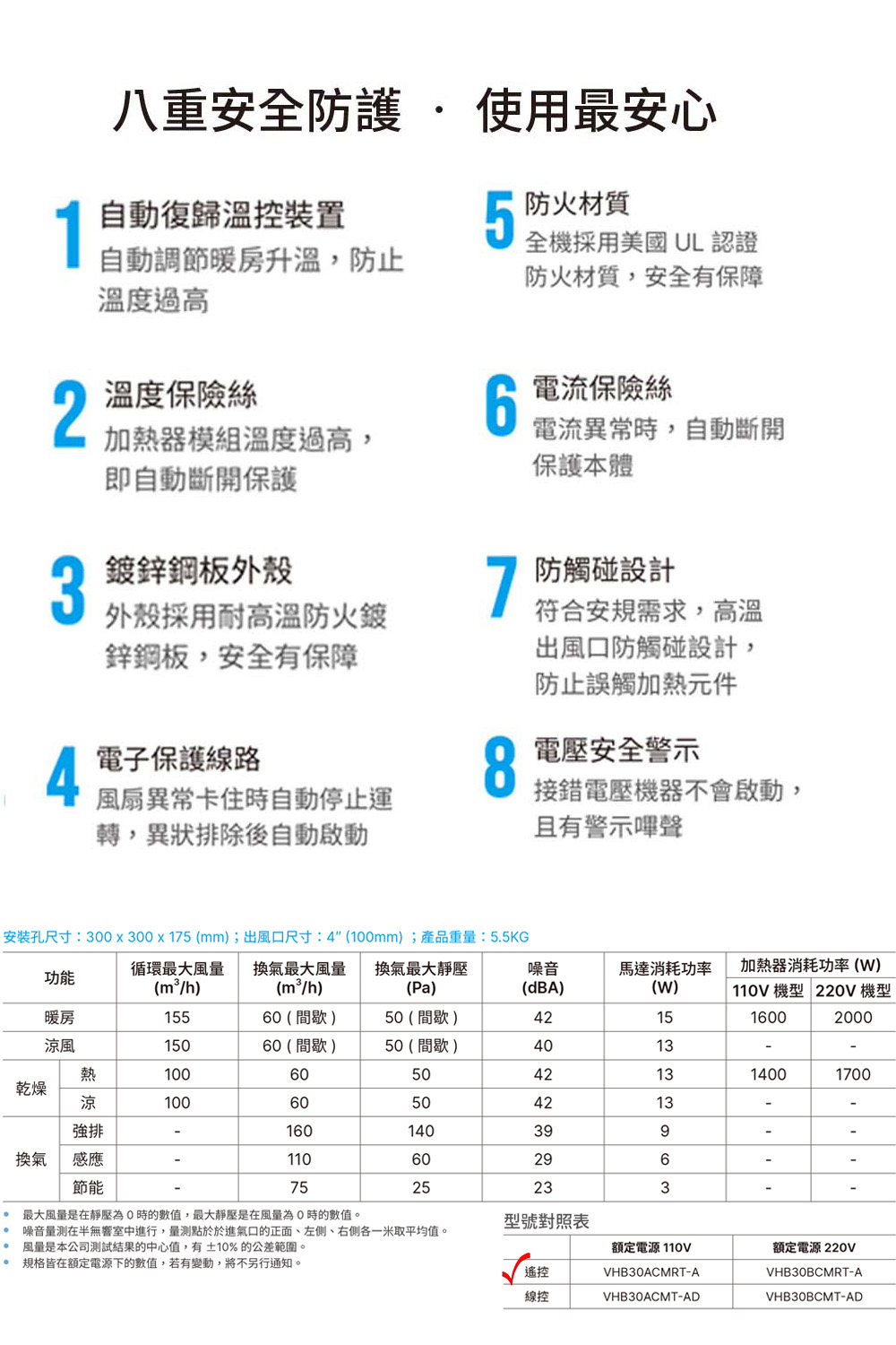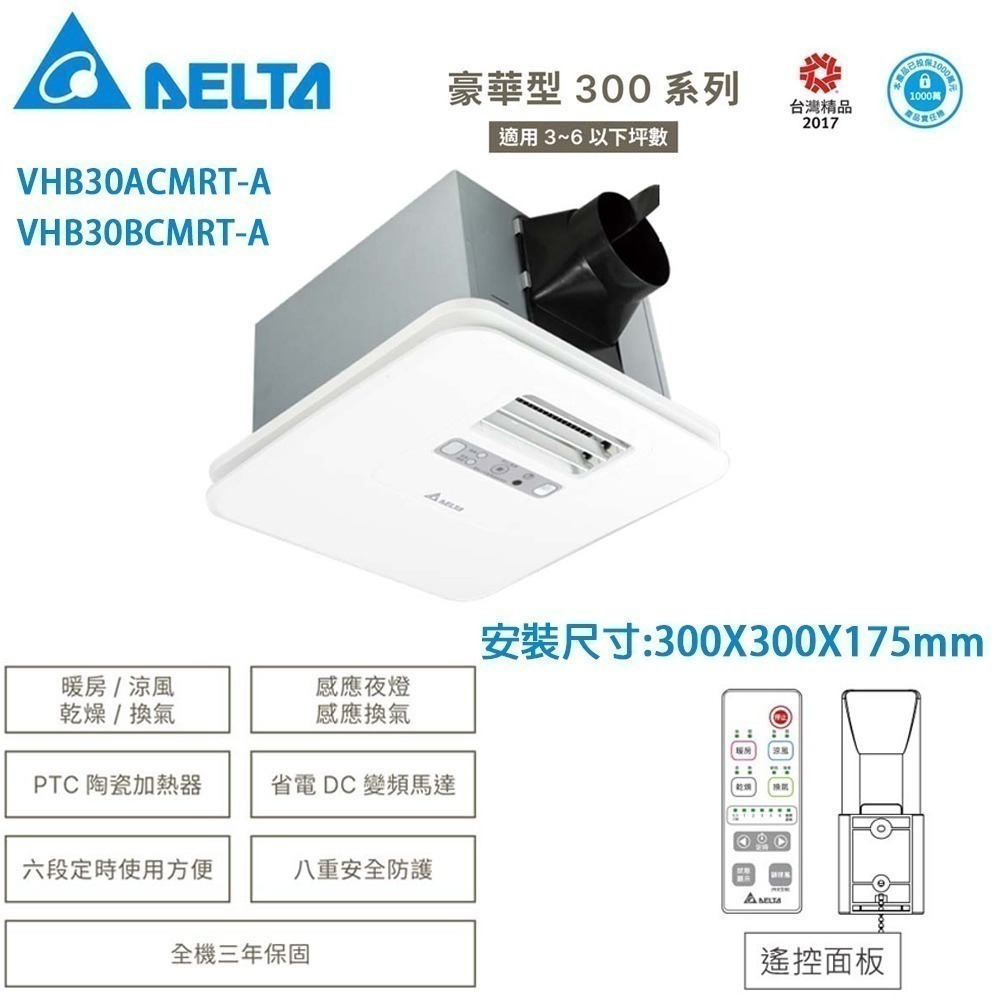 【台達電子】豪華型300系列|浴室暖風機 乾燥機 遙控|VHB30ACMRT-A//VHB30BCMRT-A