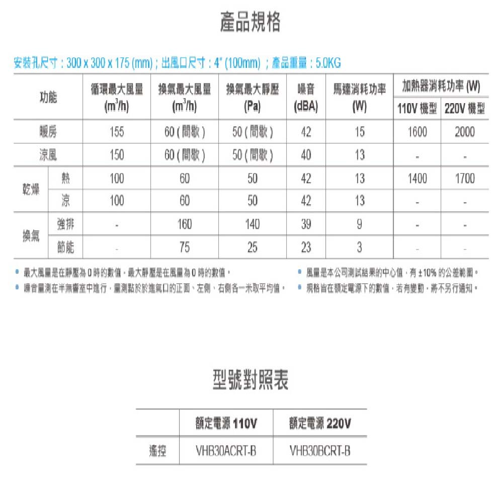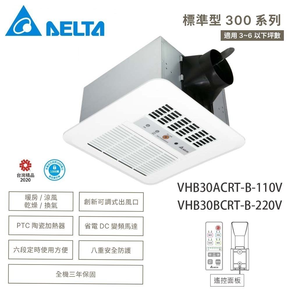 【台達電子】標準型300系列|浴室暖風機 乾燥機 遙控|VHB30ACRT-B//VHB30BCRT-B