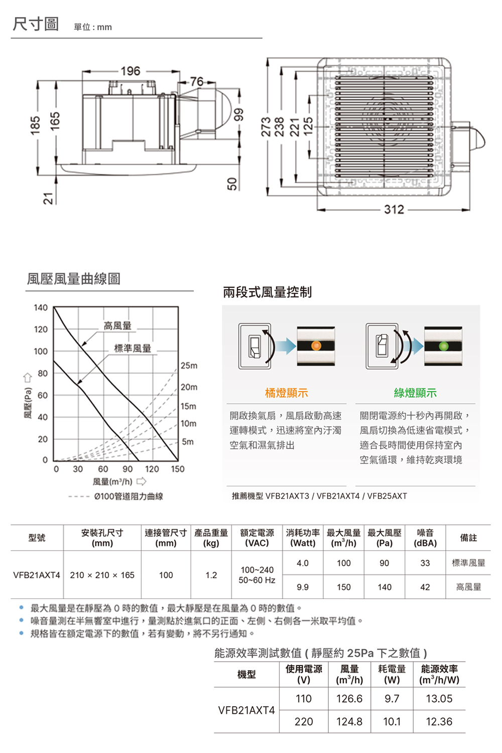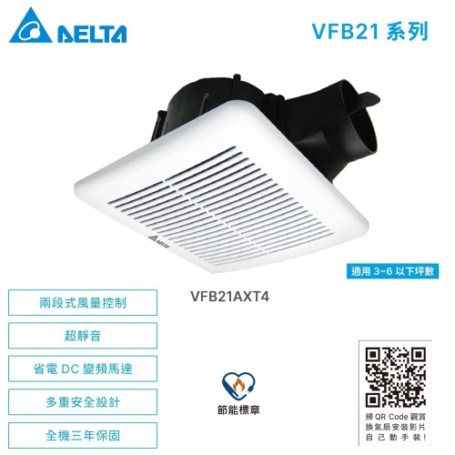 【DELTA台達】VFB21系列|DC直流節能換氣扇 排風扇 抽風扇 VFB21AXT4 全電壓 ※超取上限一台