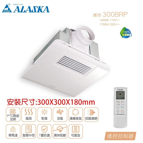 【ALASKA阿拉斯加】標準型 多功能浴室暖風乾燥機 遙控|300BRP 暖風機/暖氣機
