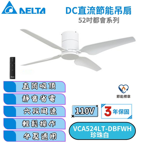 【DELTA台達】DC節能吊扇 52吋都會系列 珍珠白 VCA524LT-DBFWH 適用 4-6 坪