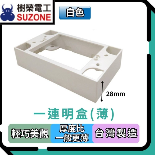 【樹榮電工SUZONE】一連明盒(薄)|明BOX/開關盒/插座盒/塑膠盒/台灣製造/超取上限80個