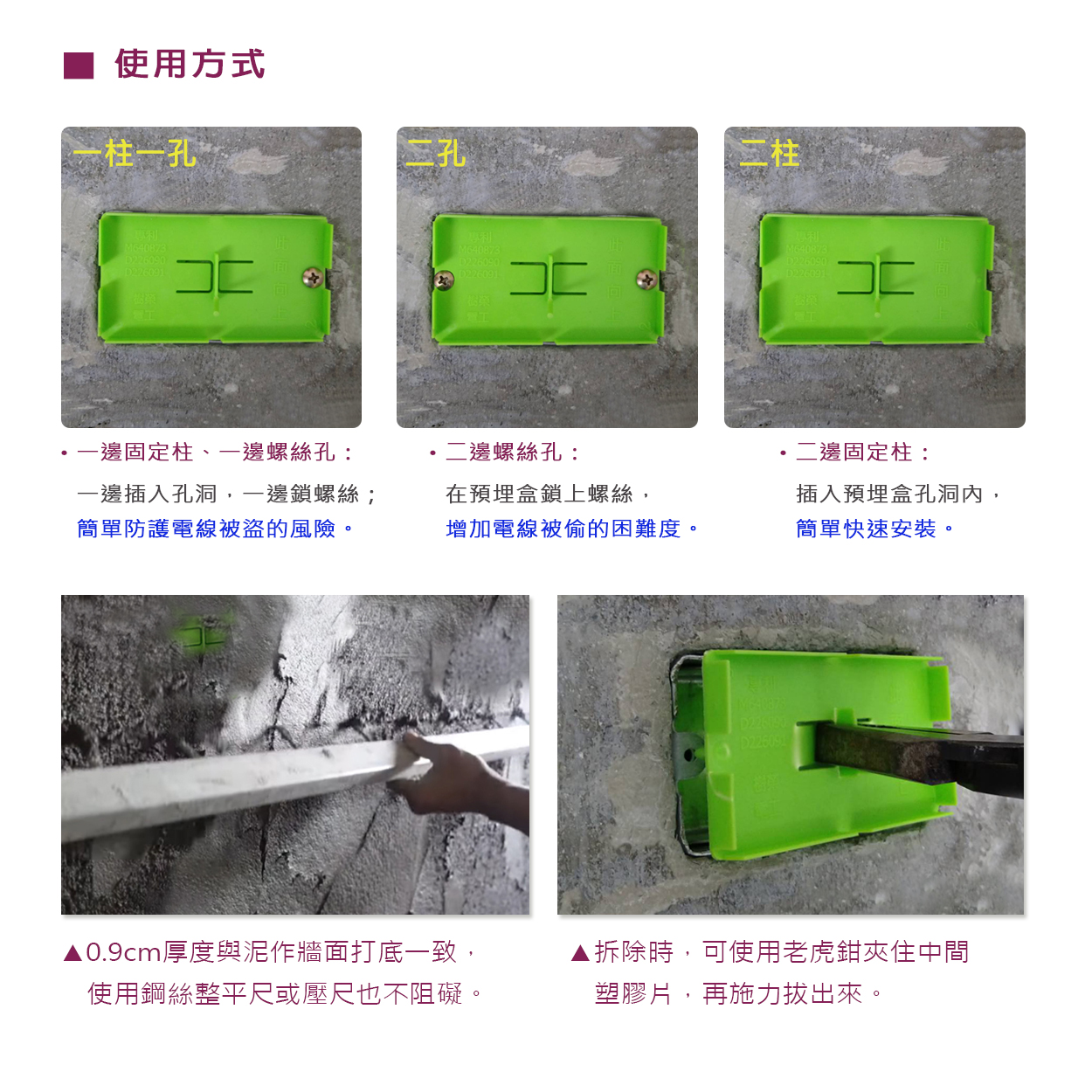 ❤可防止泥作施工時,泥漿流入預埋接線盒內。