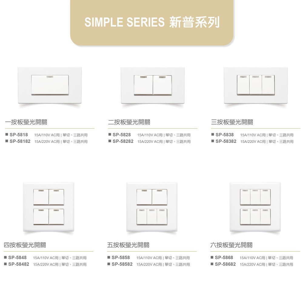【樹榮電工SUZONE】新普系列 按板螢光開關 開關壓板