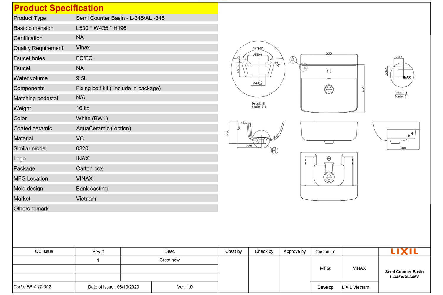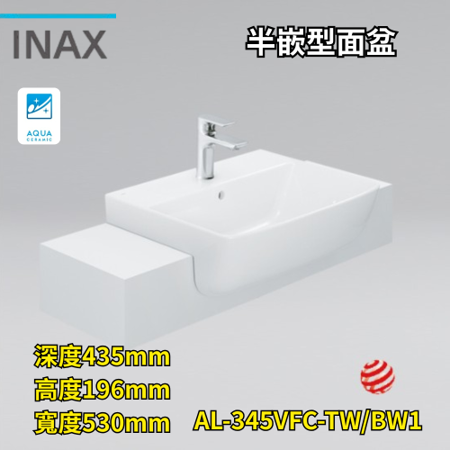 💯原廠公司貨【日本 INAX 伊奈】半嵌型面盆 AL-345VFC-TW/BW1 門市同步銷售/配送僅限北北基桃