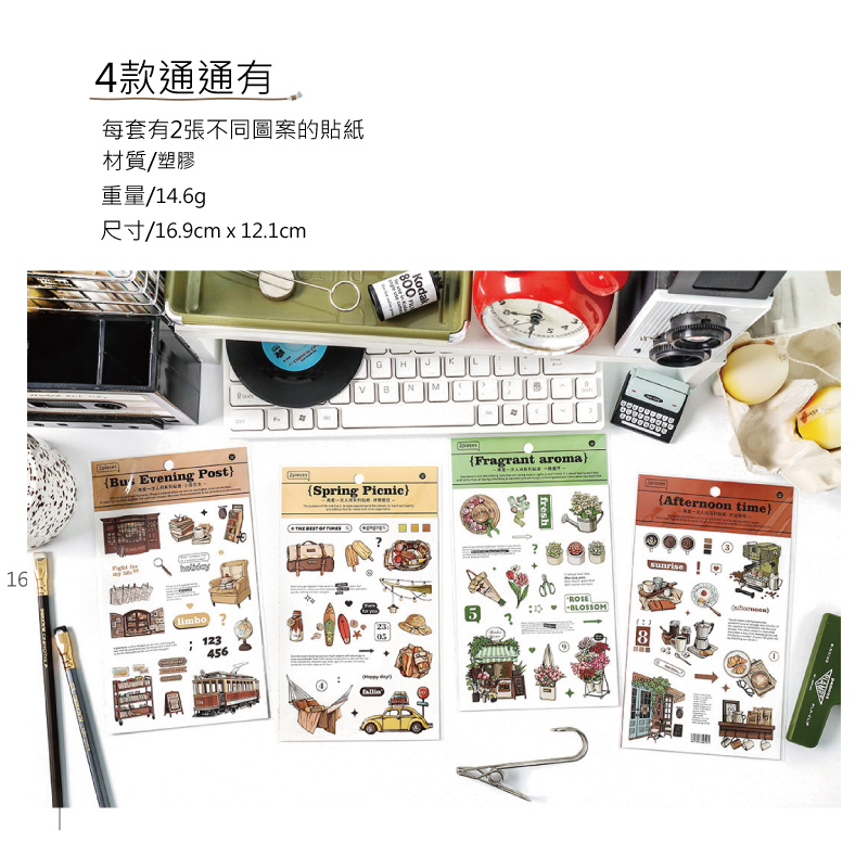 搭配紙膠帶、素材紙、印章、貼紙、乾燥花葉…等