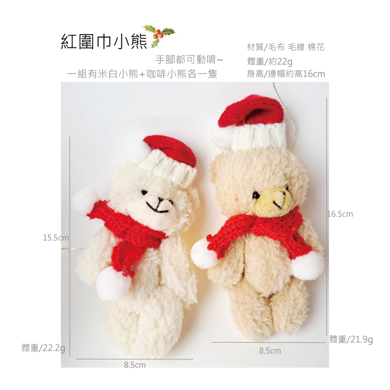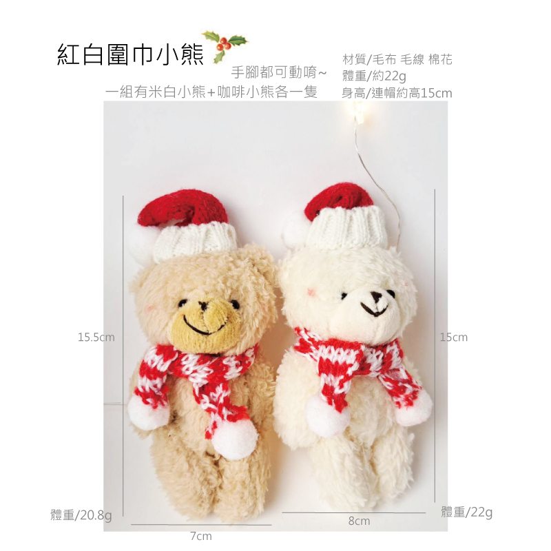 說明:1.一組有1隻米白色小熊+1隻咖啡色小熊