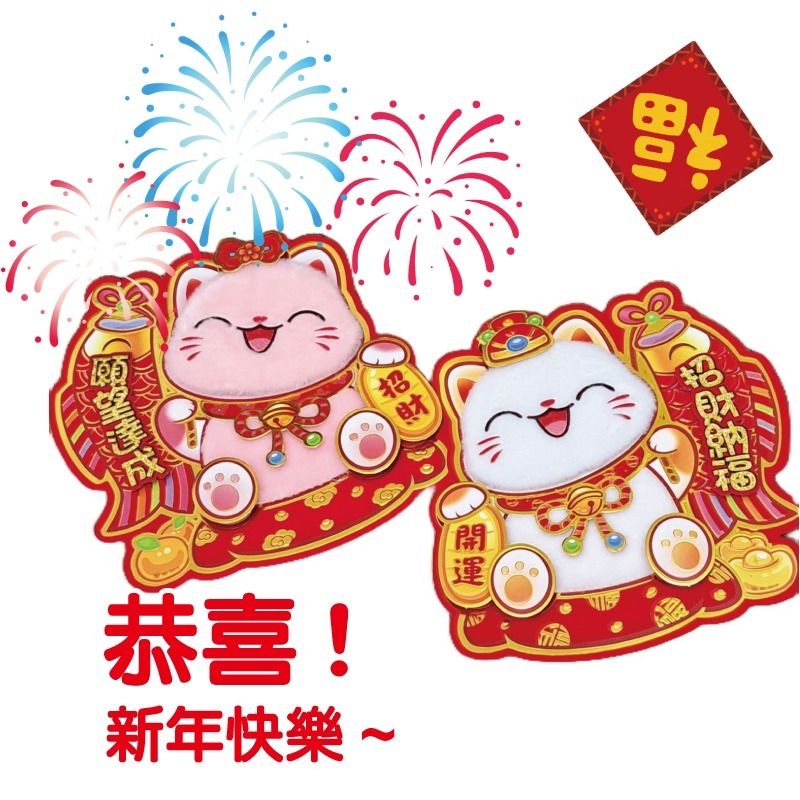 2. 26/兩隻招財貓是一對有附泡棉膠,其餘各款都背面自帶背膠,黏貼時不用再到處找糨糊了~