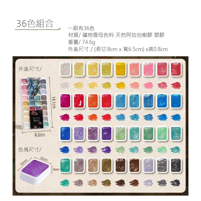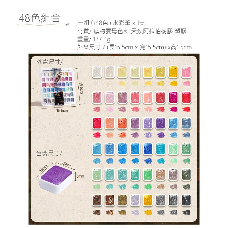 材質:礦物雲母色料 /天然阿拉伯樹膠 /塑膠