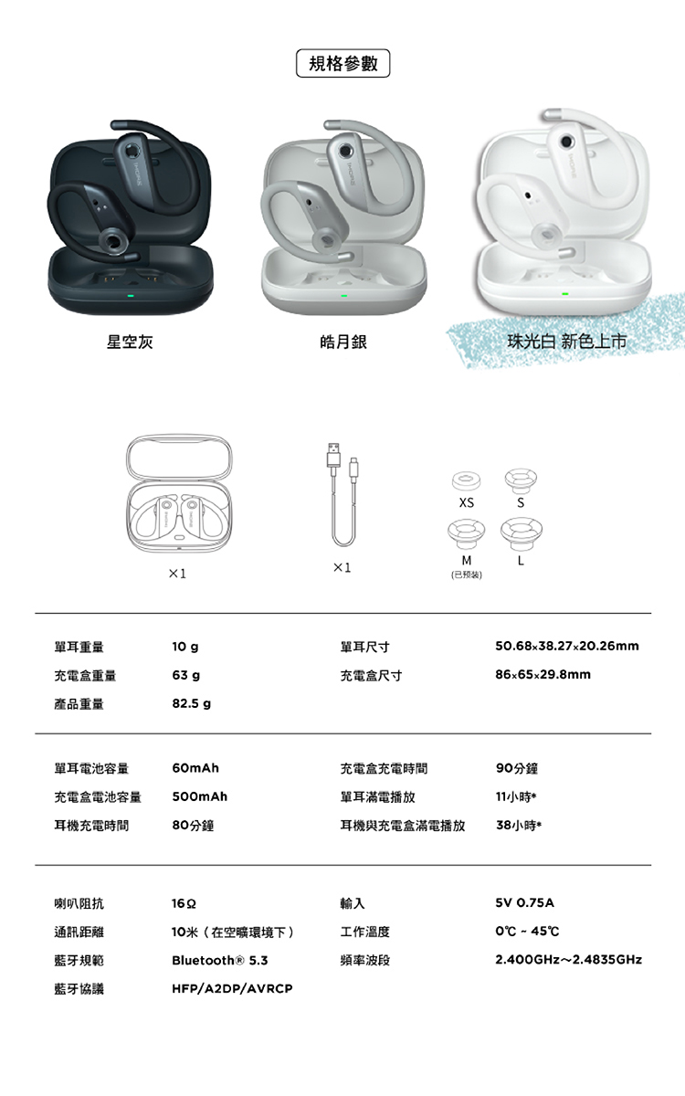 耳機尺寸:50.7 × 38.3 × 20.3mm