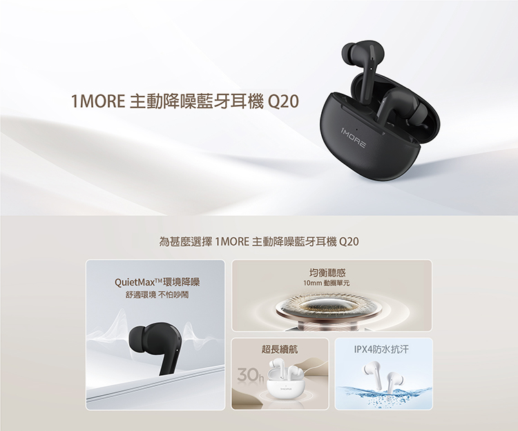 #1MORE #萬魔聲學 #Q20 #真無線 #藍牙耳機 #IPX4 #bluetooth5.3 #主動降噪