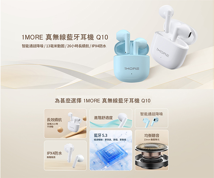 #1MORE #萬魔聲學 #Q10 #真無線 #藍牙耳機 #IPX4 #bluetooth5.3 #半入耳 #降噪