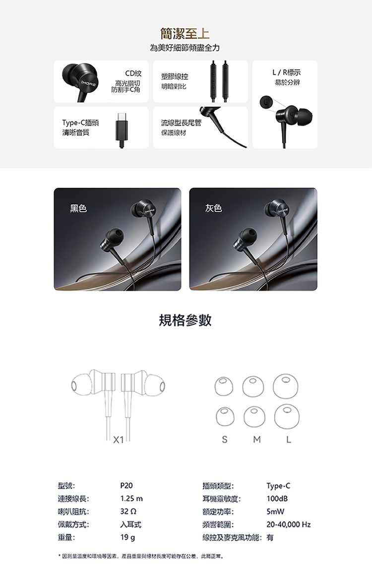 產品名稱:1MORE 活塞有線耳機 Type-C版
