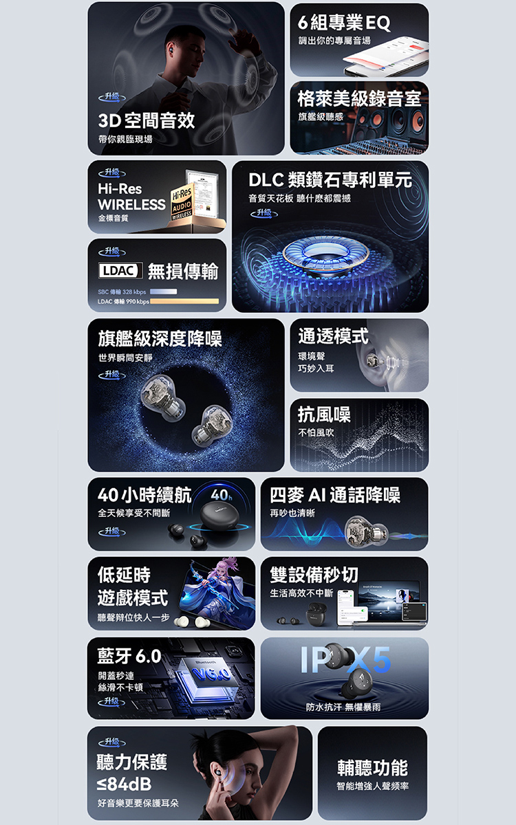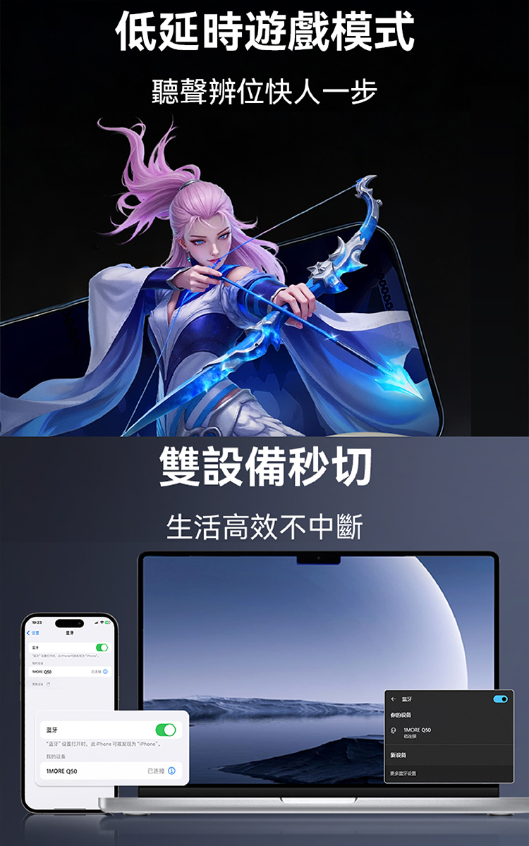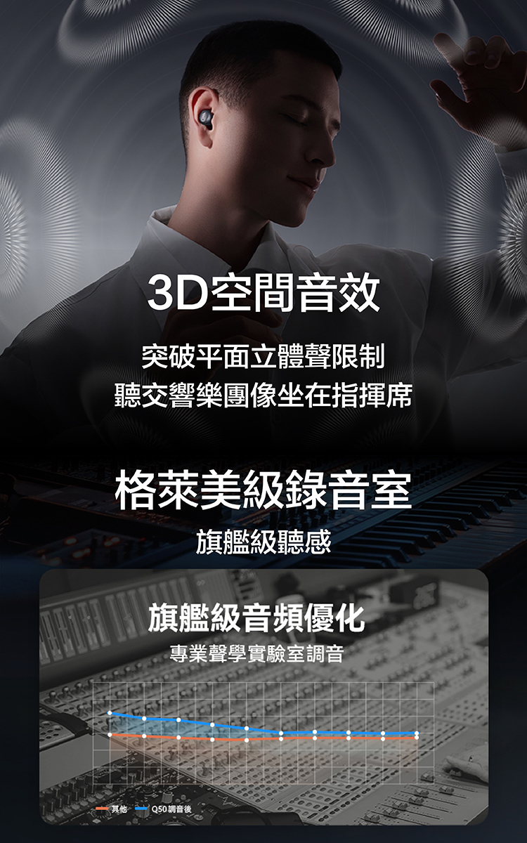 #1MORE #萬魔聲學 #Q50 #真無線 #藍牙耳機 #Hi-RES #LDAC #空間音效 #聽力保護 #IPX5 #bluetooth6.0 #主動降噪
