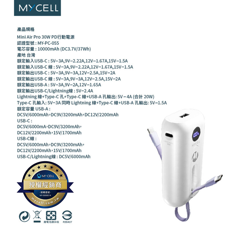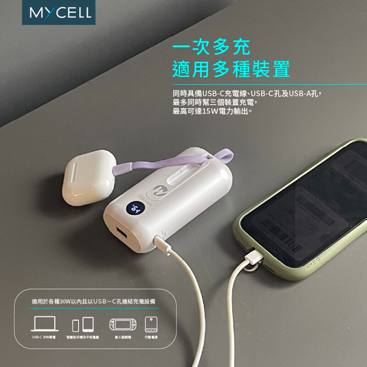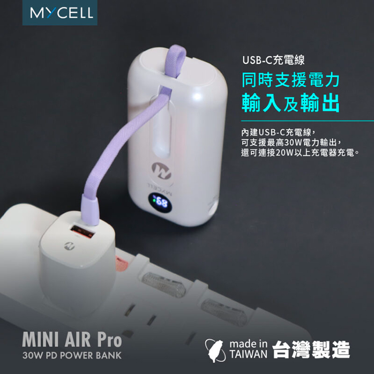 【MYCELL】Mini Air Pro 30W PD 10000 自帶線行動電源 / MY-PC-055