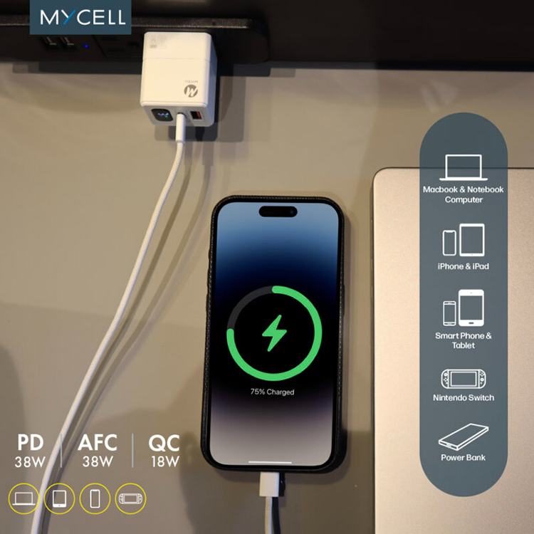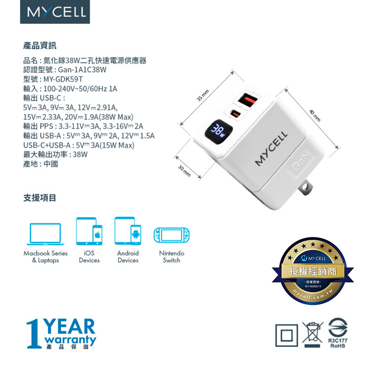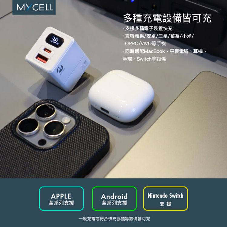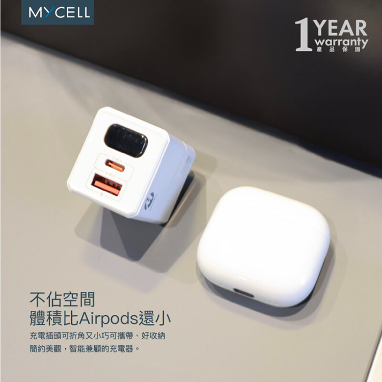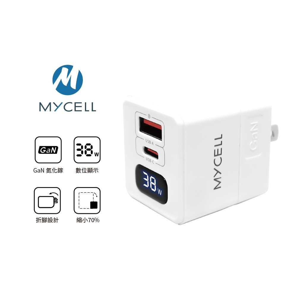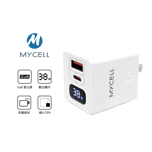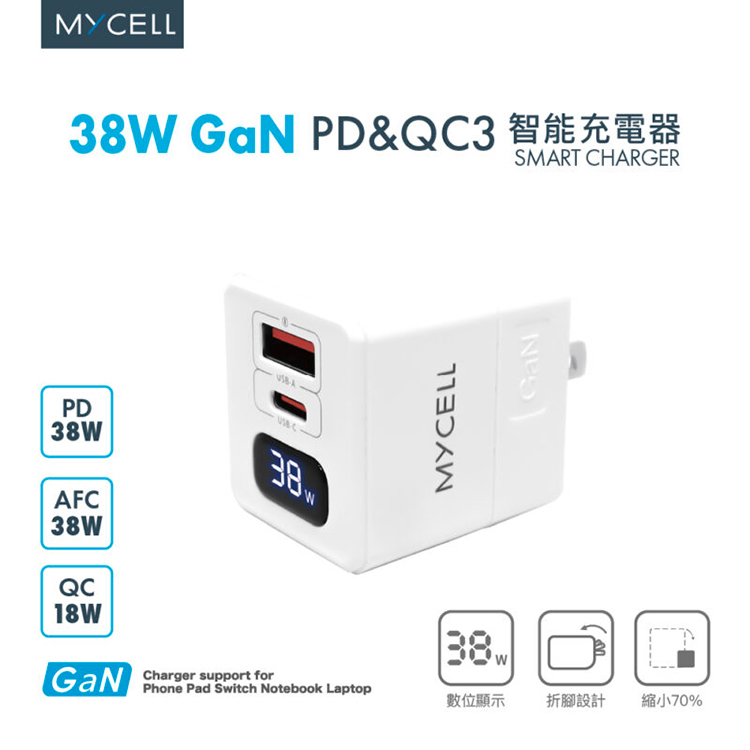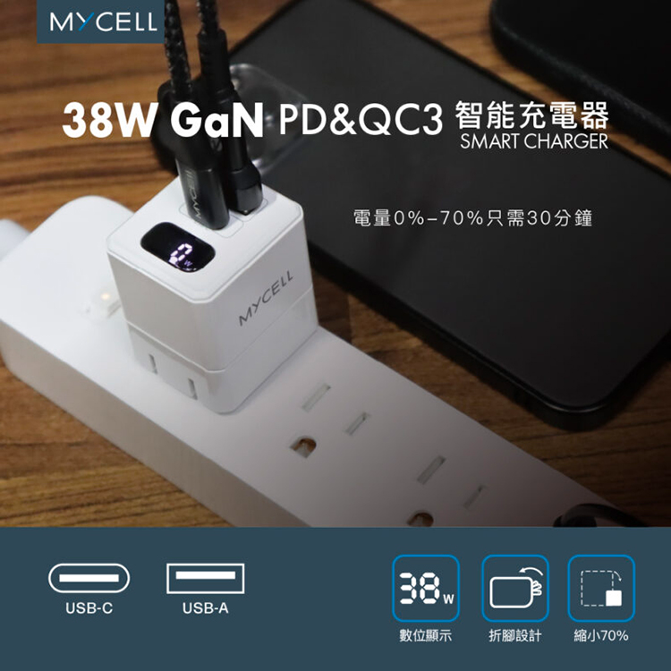 【MYCELL】38W氮化鎵 PD&QC3 數位顯示智能充電器 / MY-GDK59T