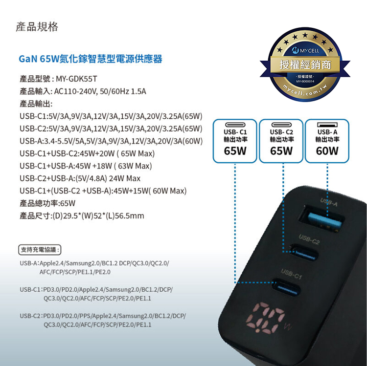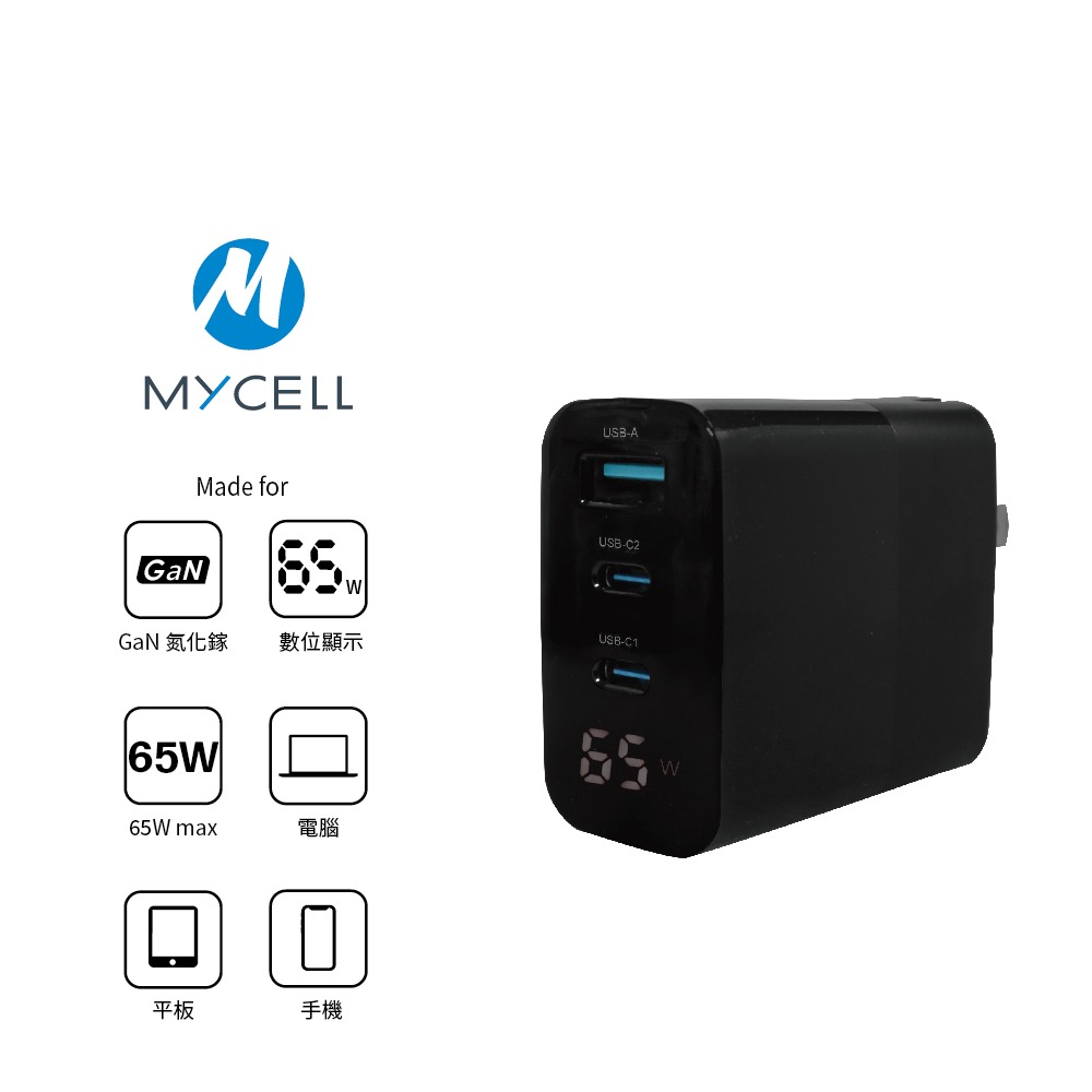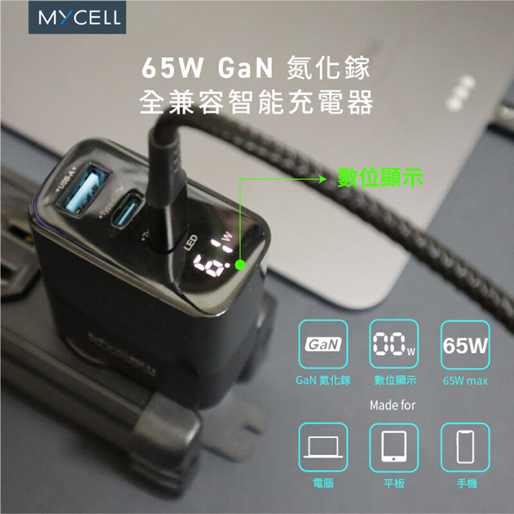 【MYCELL】65W GaN氮化鎵數位顯示智能充電器 附收納盒 / MY-GDK55T