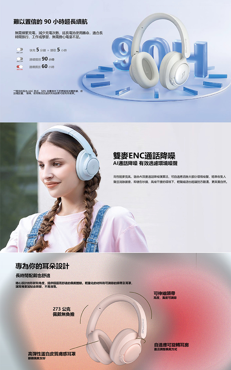 耳機重量:273 克