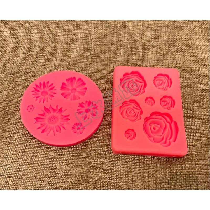 7連玫瑰、6孔太陽花矽膠模具翻糖模具 矽膠模巧克力模型手工皂模 餅乾模具蛋糕模具花邊裝飾太陽花造型矽膠模具翻糖模食玩配件