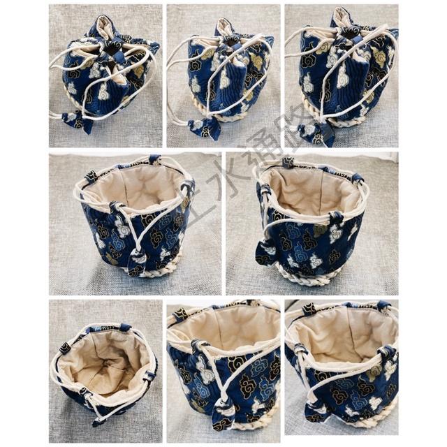台灣現貨藍祥雲款茶具收納包棉麻收納布包快客杯便攜旅行茶具收納包茶杯茶壺包裝袋布藝束口袋文玩收納包