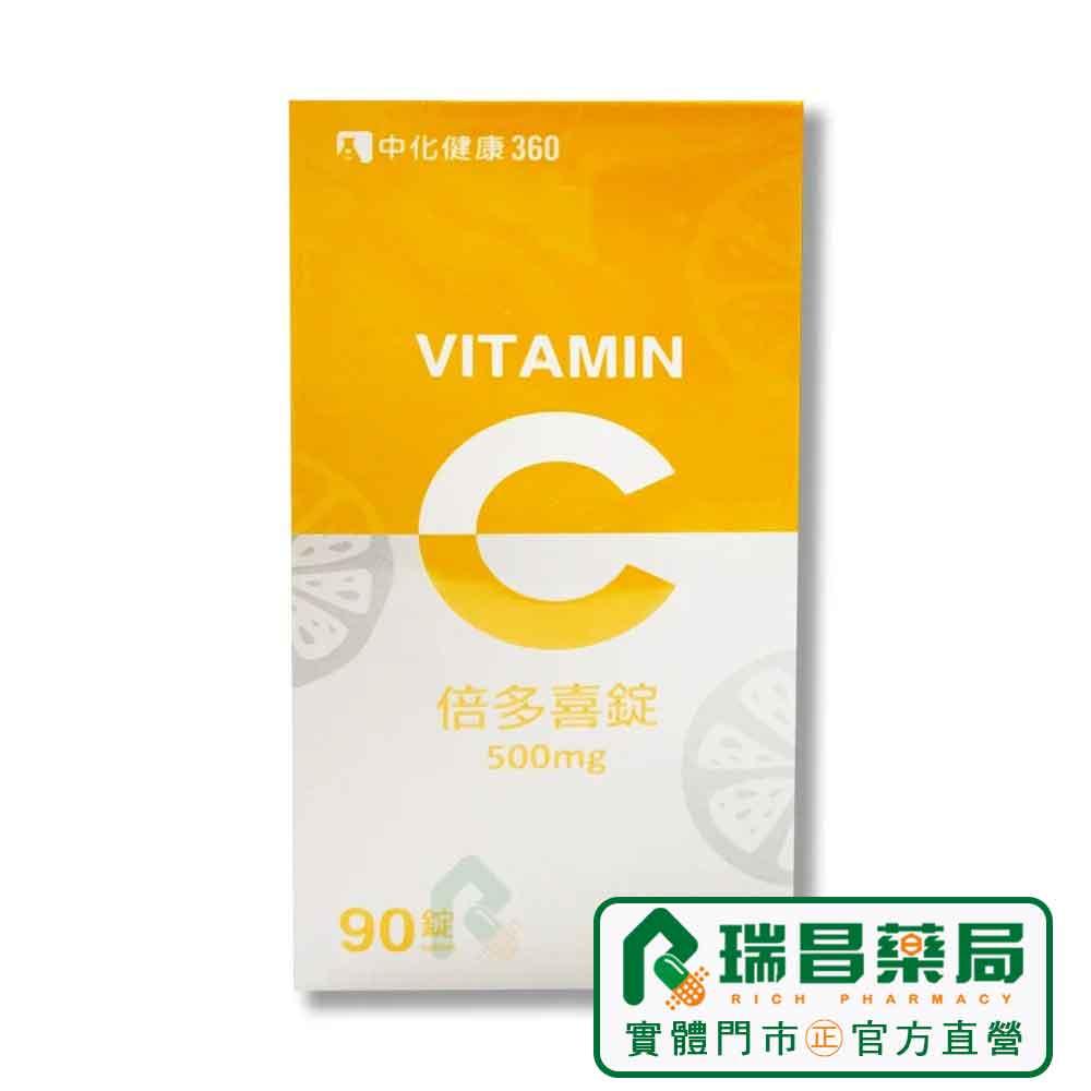 維他命C口含錠 【中化健康360】 倍多喜錠 500mg 90錠/盒 【瑞昌藥局】018337素食可 好吃維生素C