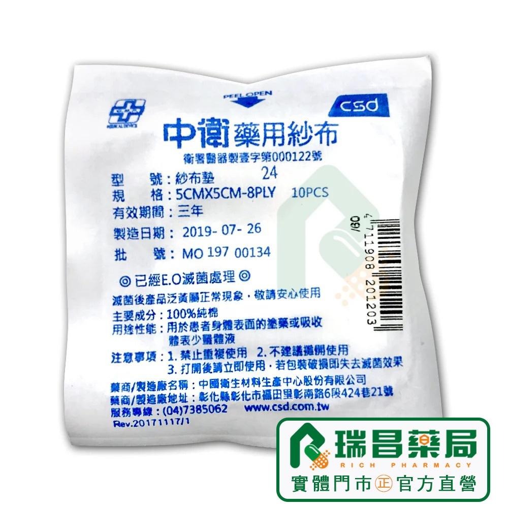 中衛藥用紗布 (滅菌/未滅菌) 5x5cm 10片裝【瑞昌藥局】000451