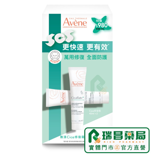【2入組】AVENE 雅漾 Cica修復霜 40ml【瑞昌藥局】930067