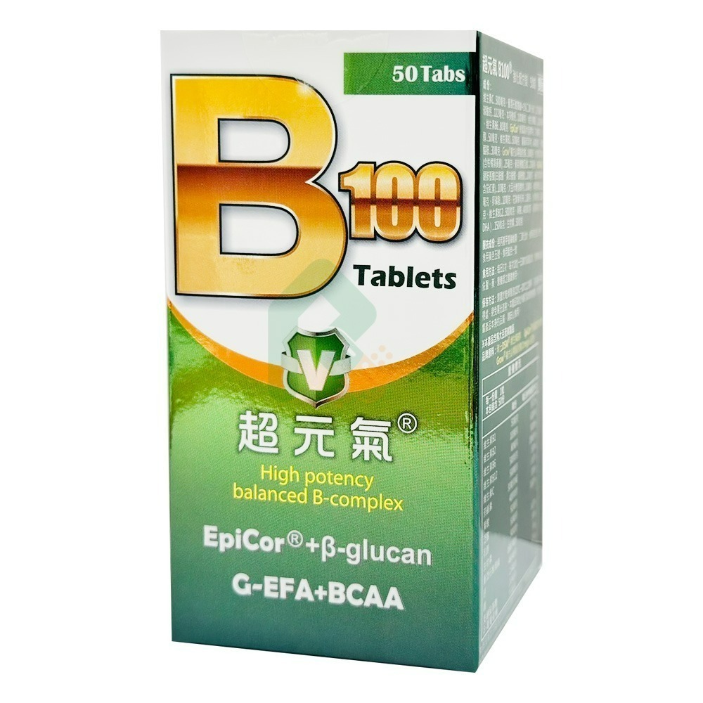 超元氣B100 強化配方50錠/盒 (B群,維他命C,BCAA,薑黃)【瑞昌藥局】018297