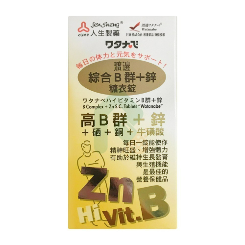 商品名稱人生製藥 渡邊綜合B群+鋅糖衣錠