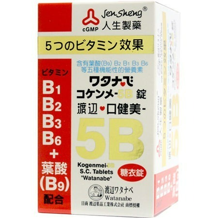 商品名稱人生製藥 渡邊維他命5B糖衣錠 Watanabe Kogenmei-5B S.C. Tablets (B群)
