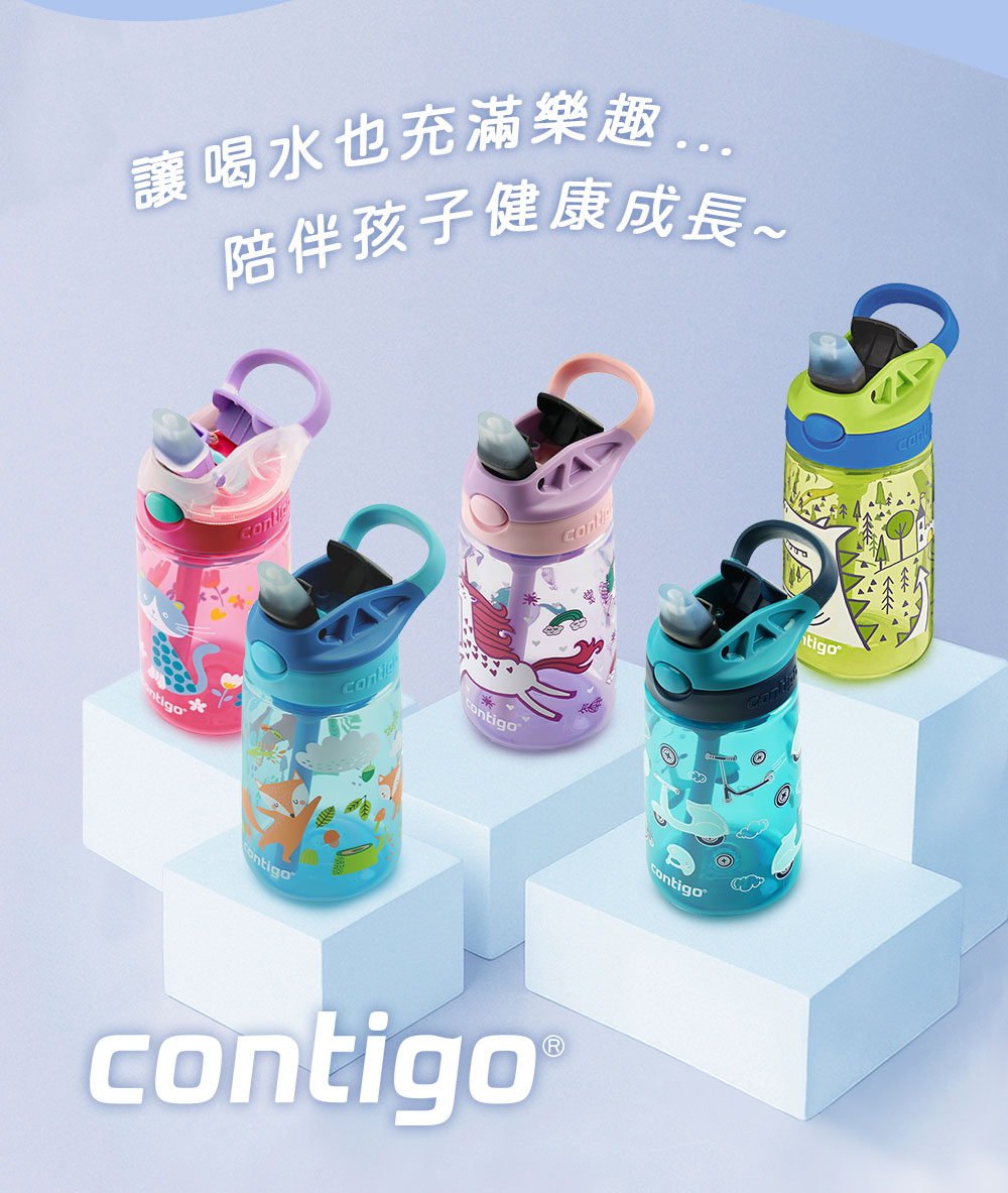 【美國Contigo】兒童吸管瓶 414cc-(貓咪/獨角獸摩托車/狐狸)
