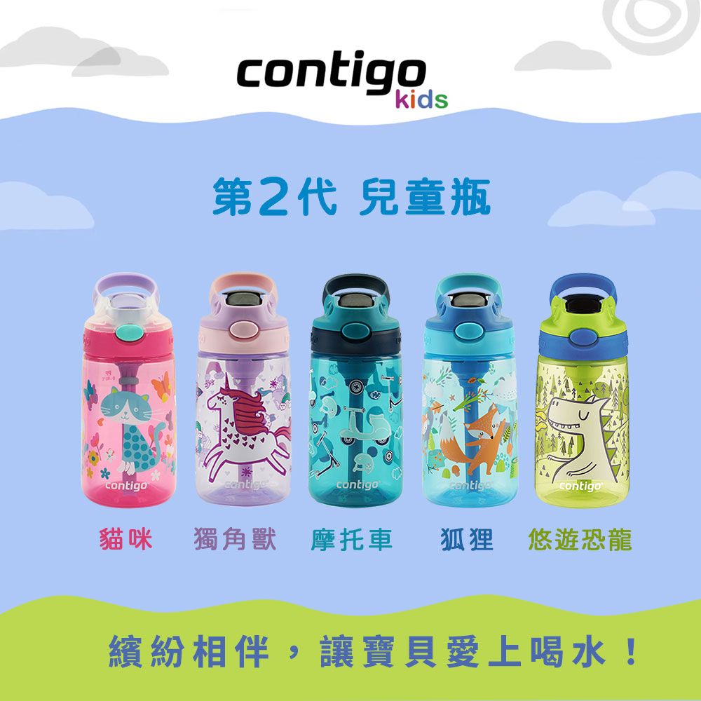 【美國Contigo】任選兩入兒童吸管瓶 414cc-(貓咪/獨角獸摩托車/狐狸)