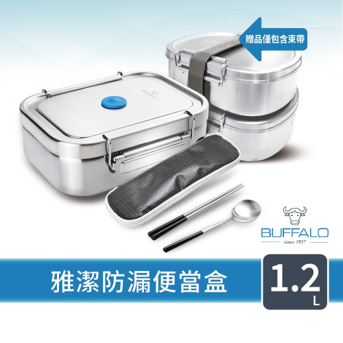 【Buffalo牛頭牌】雅潔防漏便當盒1.2L(IH.電磁爐適用/304不鏽鋼/防漏)