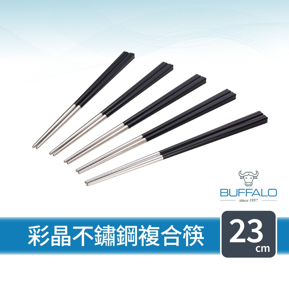【Buffalo牛頭牌】小牛彩晶不鏽鋼筷5入1組(黑)x12組