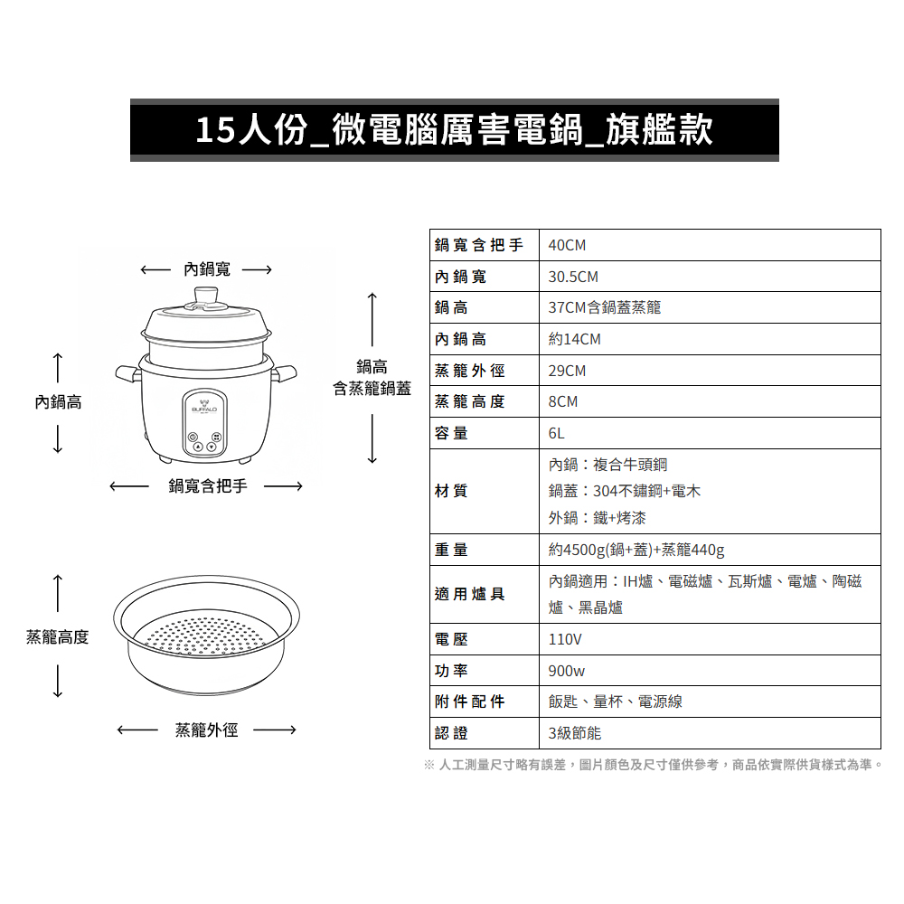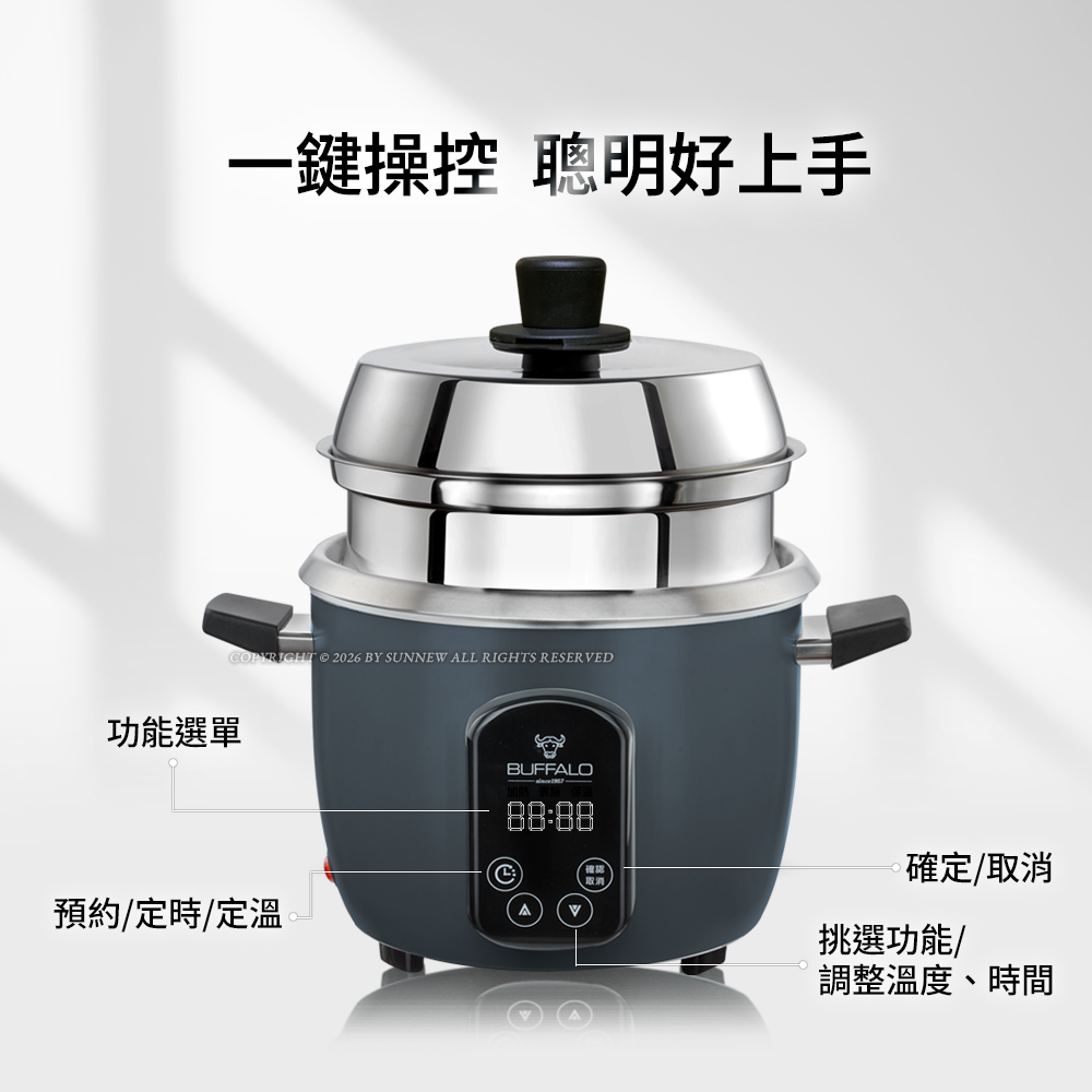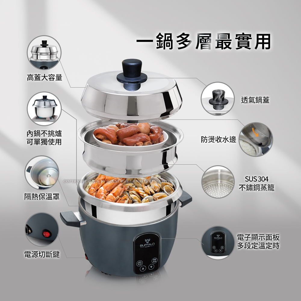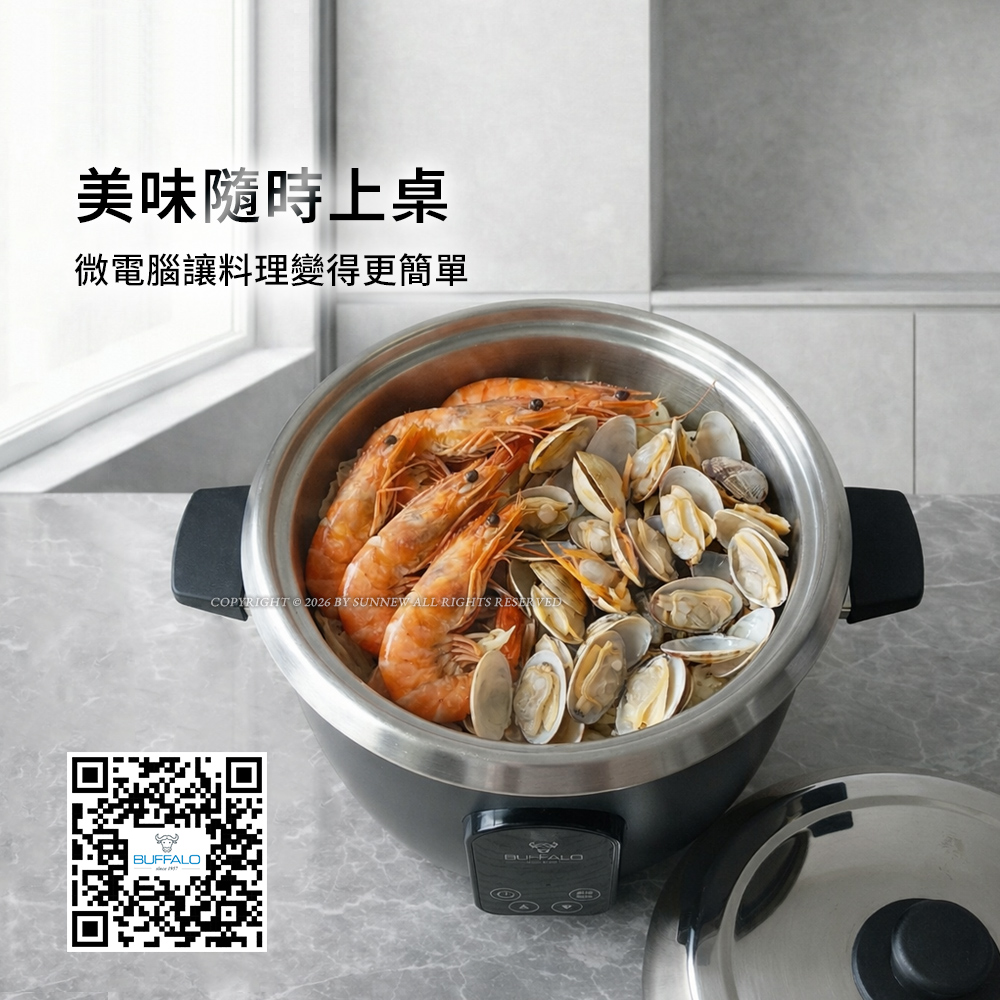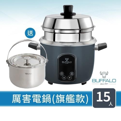 【Buffalo牛頭牌】15人份_微電腦厲害電鍋(附提鍋)_旗艦款 (黑/可分離式牛頭鋼內鍋/304不鏽鋼)